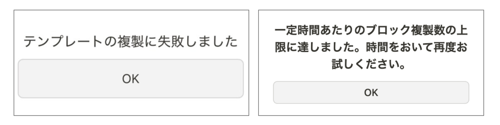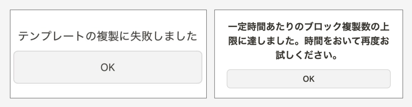 「テンプレートの複製に失敗しました」や「問題が発生しました」などのエラーが表示されて複製できない場合の対処法